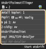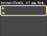 Når du trykker på <På> skrives det ut med toner i sparemodus. Velg <På> når du ønsker å sjekke oppsettet eller andre utseendemessige ting før du går videre med den endelige utskriften av en stor jobb.