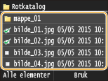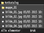 For å vise innholdet i en mappe velger du en mappe og trykker. For å gå tilbake til mappen i det øvre nivået, trykker du på