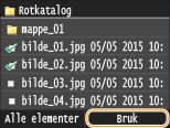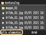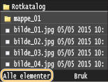 Hvis du valgte en fil før du trykket <Alle elementer>, kan du bare velge filer med samme format.