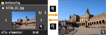 Trykk på  for å vise en større forhåndsvisning. Trykk på  for å gå tilbake til den originale forhåndsvisningsstørrelsen.