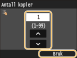 Spesifiser antall kopier fra 1 til 99. Trykk på