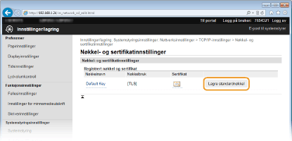 Klikk på [Lagre standardnøkkel] til høyre for nøkkelparet du vil bruke.
