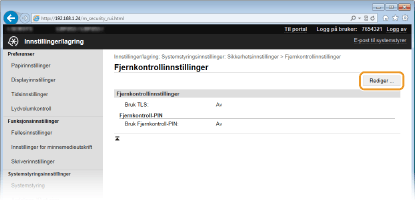 Klikk på [Sikkerhetsinnstillinger]  [Fjernkontrollinnstillinger].
