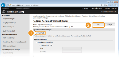 Aktiver TLS for Fjernkontroll.