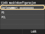 Trykk på  (  ) og deretter på <Sjekk maskinkonfigurasjon>.