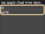 Ota käyttöön laitteen Google Cloud Print -toiminto. Voit myös poistaa käytöstä laitteen Google Cloud Print -toiminnon.