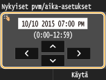 / näytetään, siirrä kohdistinta napauttamalla.ArvoalueSyöttökentän alapuolella sulkeissa ( ) näytetyt arvot ovat syötettävien arvojen rajat.