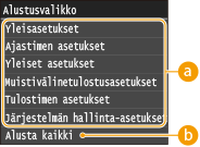 Voit palauttaa ostohetkellä valittuna olleet <Verkkoasetukset>-oletusasetukset noudattamalla alla olevia ohjeita.