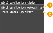 <Näytä tarvikkeiden tiedot (Etäkäyttöliittymä/Toner Status)>