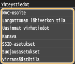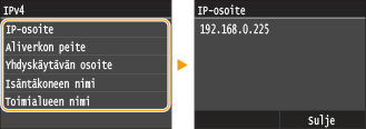Voit tarvittaessa tulostaa nykyisten verkkoasetusten luettelon. Käyttäjän tietolista/Järjestelmänvalvojan tietolista