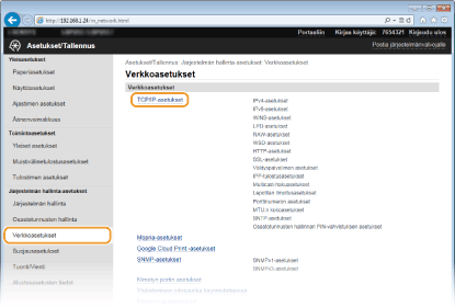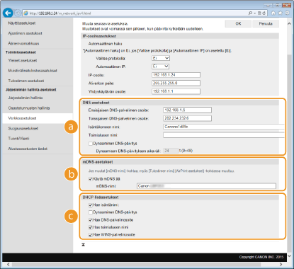 Asetusten valitseminen käyttöpaneelistaDNS-asetukset voi avata myös Koti-näytön kohdasta <Valikko>. IPv4-asetukset IPv6-asetukset