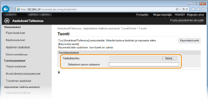 Syötä salasana, joka asetettiin asetusten viennin yhteydessä.