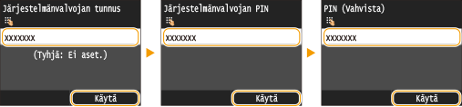 ![]() Järjestelmänhallinnan tunnus ja PIN-koodi ovat oletusarvoisesti kumpikin "7654321." Huomaa, että turvallisuussyistä näiden arvojen käyttämistä ei suositella. Ne kannattaa vaihtaa noudattamalla seuraavia ohjeita.