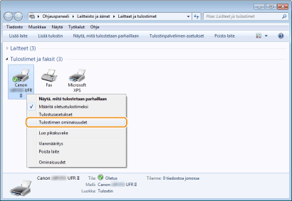 Valitse valintaruutu, mikäli laite ja tietokone on yhdistetty USB- tai WSD-portin välityksellä.
