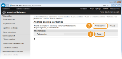 Avainpari tai CA-varmenne asennetaan laitteeseen.