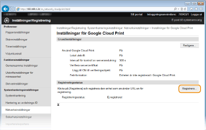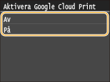 Aktivera Google Cloud Print-funktionen för enheten. Du kan även avaktivera Google Cloud Print-funktionen för enheten.
