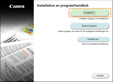 Installera e-handbok på din dator med hjälp av Dvd-skivan som medföljer enheten.