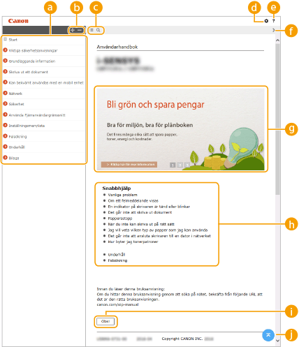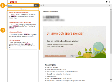 Klicka för att visa information om hur du visar e-handbok, hur du gör en sökning och annan information.