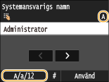 Tryck på <A/a/12> upprepade gånger tills <a> väljs.