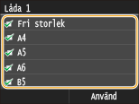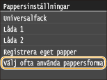 Du kan försäkra dig om att endast pappersformat som används ofta visas på skärmen för val av inställning av pappersformat.