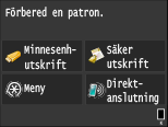 Ange när det här meddelandet visasDu kan ställa in vilket värde som helst som procenten av den kvarvarande mängden i tonerpatronen som utlöser detta meddelande. Visningstid för Meddelande om att förbereda patron