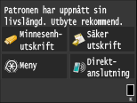 Om ovanstående symptom, "Ränder syns", "Bleka partier" eller "Ojämn täthet", uppträder ska du följa anvisningarna för Använda all toner så att det eventuellt blir möjligt att under en ytterligare men begränsad tid skriva ut med god kvalitet.
