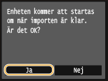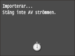 Importen startar. Maskinen startar om automatiskt efter att importen slutförts.