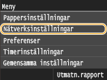 Alla inställningar för nätverket visas med korta beskrivningar. Standardinställningarna markeras med ett kors (