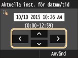Ange <Tidszon> innan du anger datum och tid. Om inställningen för <Tidszon> ändras, ändras också aktuellt datum och aktuell tid.