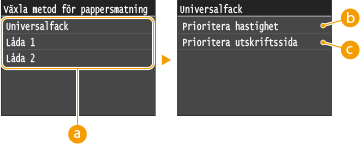 Papper), används i stället <Prioritera hastighet> för papperskällan. I så fall måste du fylla på papper på samma sätt som när du valt <Prioritera hastighet> (