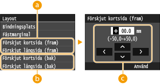 <Förskjut kortsida (fram)>/<Förskjut långsida (fram)>