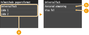 Om inställningarna i skrivardrivrutinen inte stämmer överens med format och typ för det påfyllda papperet kan pappersstopp eller utskriftsfel inträffa.