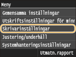 De flesta skrivarinställningar, t.ex. antal kopior och enkel-/dubbelsidig utskrift, kan göras från skrivardrivrutinen eller ett datorprogram (Grundläggande utskriftsfunktioner), men inställningen för <Åsidosätt pappersformat> måste göras på enheten.