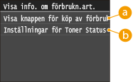 <Visa information om förbrukningsartikl. (RUI/Toner Status)>