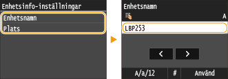 Ange upp till 32 alfanumeriska tecken för namn och installationsplats som ska identifiera enheten.