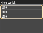 I de flesta Ethernet-nätverk är 1 500 byte maximal storlek på ett paket som kan skickas. Ett paket är en mängd data som ursprungsdata delas upp i innan de skickas. Maximal överföringsmängd kan variera på varje nätverk. Ändra inställningarna för enheten om det är nödvändigt. Kontakta nätverksadministratören om du behöver mer information.