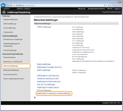 Använda iW Management Console plug-inDu behöver aktivera dedikerade portinställningar och SNMP-inställningar. För SNMP-inställningar ska du ange [MIB-åtkomstbehörighet] till [Läs-/skrivbar] för både plug-in-programmet SNMPv3 och SNMPv1. Inställningar för reserverad port Övervaka och styra enheten med SNMP
