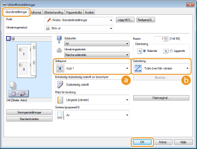 Välj antalet sidor som ska skrivas ut på ett enstaka ark i [Sidlayout]