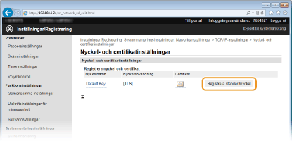 Klicka på [Registrera standardnyckel] till höger om det nyckelpar som du vill använda.
