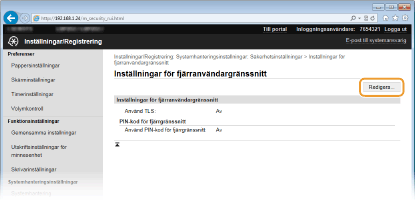 Klicka på [Säkerhetsinställningar]  [Inställningar för fjärranvändargränssnitt].