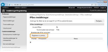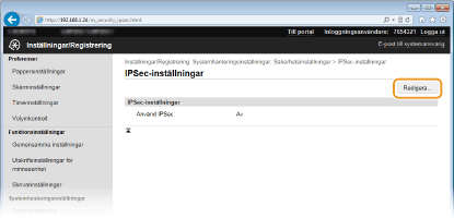 Använda kontrollpanelenDu kan också aktivera eller inaktivera IPSec-kommunikation från <Meny> på skärmen Hem. Använd IPSec
