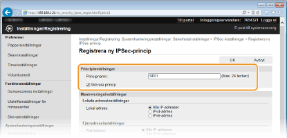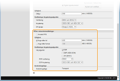 Ange inställningar för [Giltig i] och [Verifiering]/[Kryptering]/[DH-grupp].
