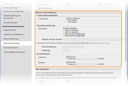 Välj det här alternativet om du vill ange en enstaka IPv4-adress eller ett intervall av IPv4-adresser som IPSec ska användas på. Ange IPv4-adressen (eller intervallet) i textrutan [Adresser att ange manuellt].