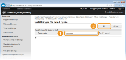 Ange upp till 24 alfanumeriska tecken för den på förhand delade nyckeln och klicka sedan på [OK].