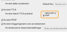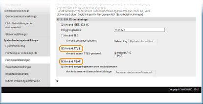 Markera kryssrutan [Använd TTLS] eller [Använd PEAP].