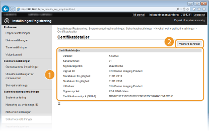Kontrollera certifikatinformationen och klicka på [Verifiera certifikat].