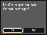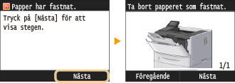 Om ett papper har fastnat visas <Papper har fastnat.> på skärmen. Tryck på <Nästa> för att hitta enkla lösningar*. Om det är svårt att förstå de procedurer som visas på skärmen finns mer information om hur du åtgärdar pappersstopp i föjande avsnitt.