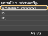 Du kan även kontrollera med  <Enhetsstatus>  <Serienummer>.