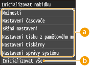 <Nabídka> <Nastavení sítě> <Inicializovat nastavení sítě> <Ano> Zařízení restartujte |