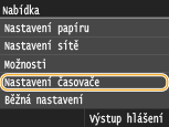Všechna nastavení týkající se časovače jsou uvedena s krátkým popisem. Výchozí nastavení jsou označena křížkem (